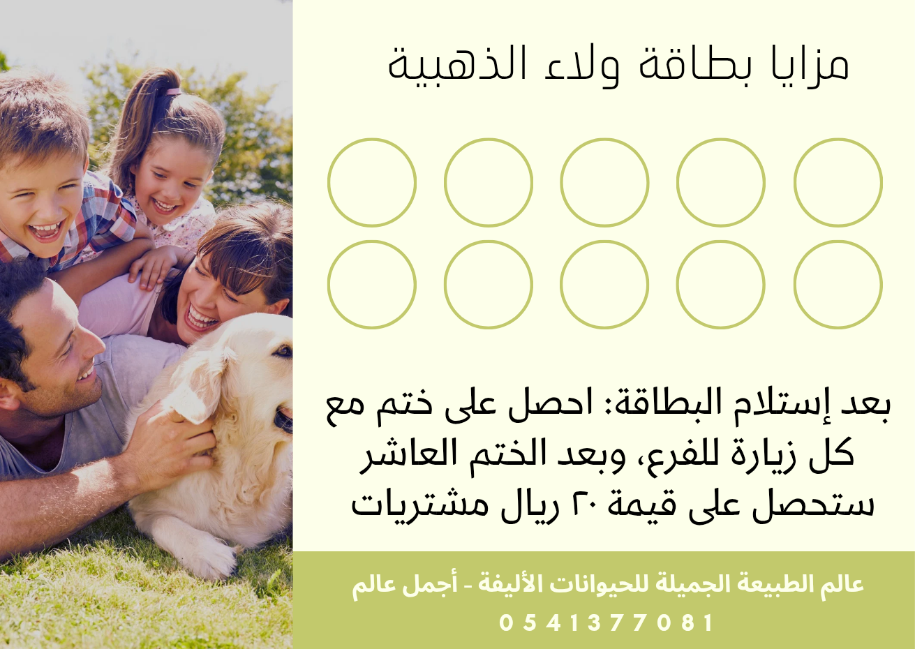 أن نكون المؤسسة الأولى والأميز في جنوب المملكة تختص بالبيع بالتجزئة لمنتجات ومستلزمات الحيوانات الأليفة, ويوجد لها عدة فروع